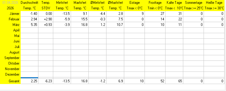 2024: Das wärmste Jahr seit Aufzeichnungsbeginn in Oberperfuss (1998) mit einer Abweichung von +1,63°C zum langjährigen Mittel 1991-2020. Damit wurde der Rekord aus dem Vorjahr 2023 um 0,2°C übertroffen. Auch österreichweit das mit Abstand wärmste Jahr seit Aufzeichnungsbeginn 1768 (+1,8°C). 2025: Ein wiederum sehr warmes mit einer Abweichung in Oberperfuss von +1,34°C zum langjährigen Mittel 1991-2020. Das Jahr war außerdem sehr trocken (-18%) und arm an extremen Wettereignissen.